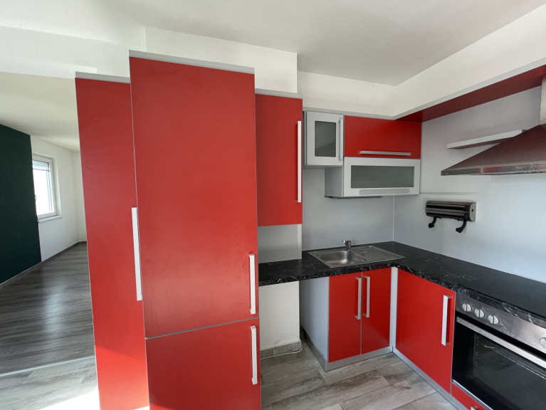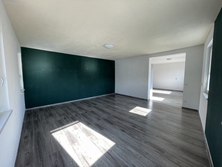 Fliesen, Laminatboden, Fußbodenheizung, Wohnküche / offene Küche, Bad mit Fenster, Dusche, Parkplatz