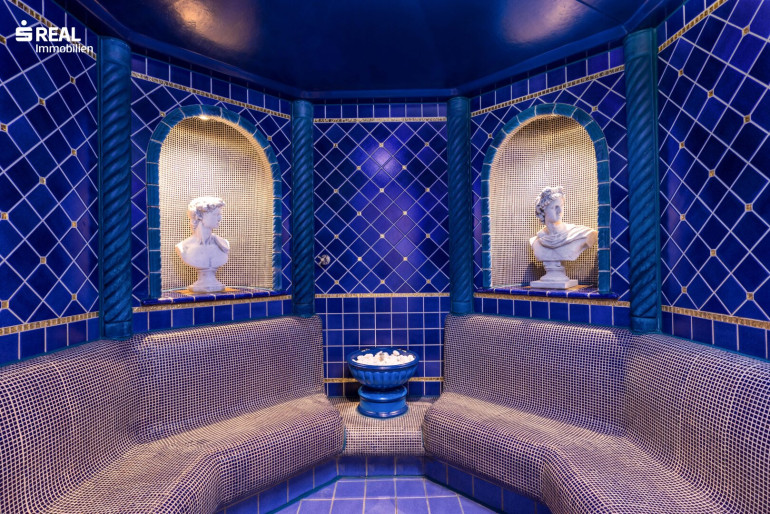 Besonders hervorzuheben ist der einzigartige Wellnessbereich mit Sauna, Dampfkabinen und Fitnessbereich sowie ein Indoor- und Outdoor-Swimmingpool, der seinesgleichen sucht.