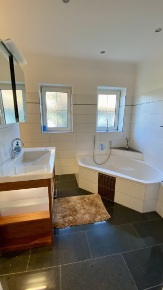 - Bad: mit Fenster, ausgestattet mit Eckbadewanne, Dusche und WC