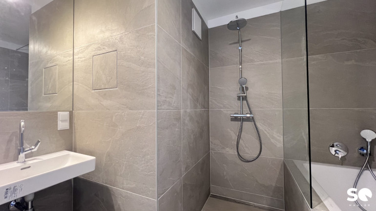 Fliesen, Parkett, Fußbodenheizung, Zentralheizung, Wohnküche / offene Küche, Personenaufzug, Dusche