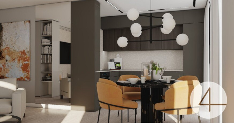 - Wohnküche mit großer Fensterfront für viel Tageslicht