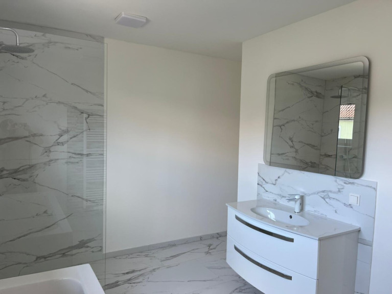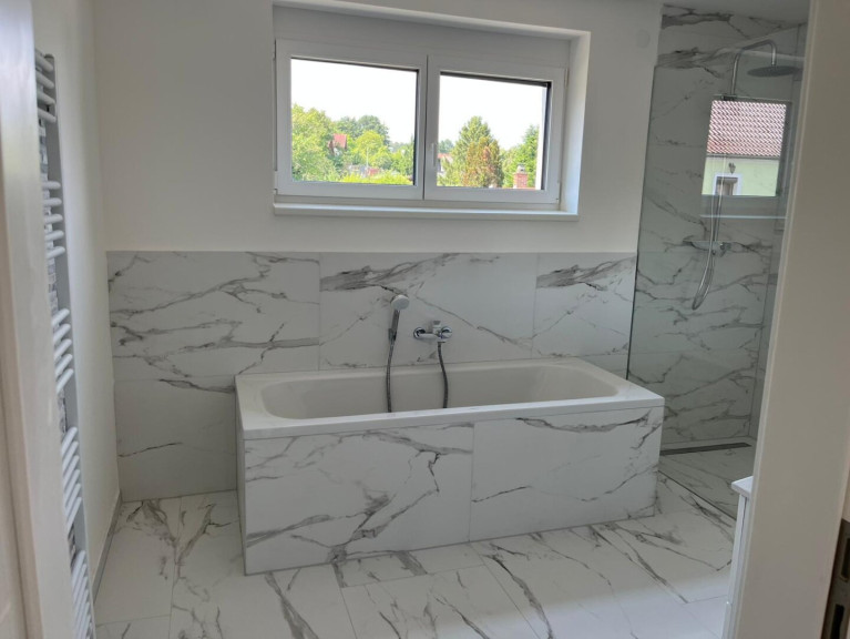 Estrichboden, Fliesen, Laminatboden, Steinboden, Fußbodenheizung, Bad mit Fenster, Badewanne, Dusche, Parkplatz