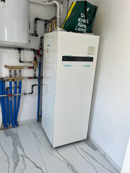 •Eine moderne Panasonic Luft-Wärmepumpe, die sowohl die Fußbodenheizung im gesamten Wohnbereich, als auch die Warmwasseraufbereitung übernimmt