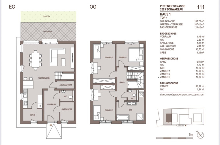 PROVISIONSFREI! Wunderschöne Doppelhaushälfte mit ca. 160m² Wfl., 5 Zi, Garten, Terrasse, 2 Stellplätze in der Nähe von Wiener Neustadt