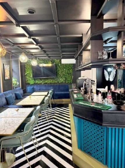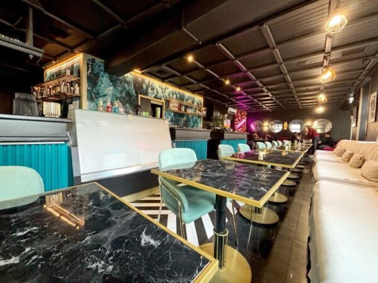 Der Innenbereich besteht aus einem großen Gastraum mit 40 Verabreichungsplätzen und einer großen Bar mit Sitzmöglichkeit, direkt an der Theke. Es sind zwei getrennte WC Anlagen vorhanden.
