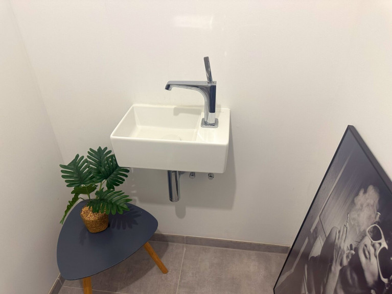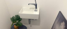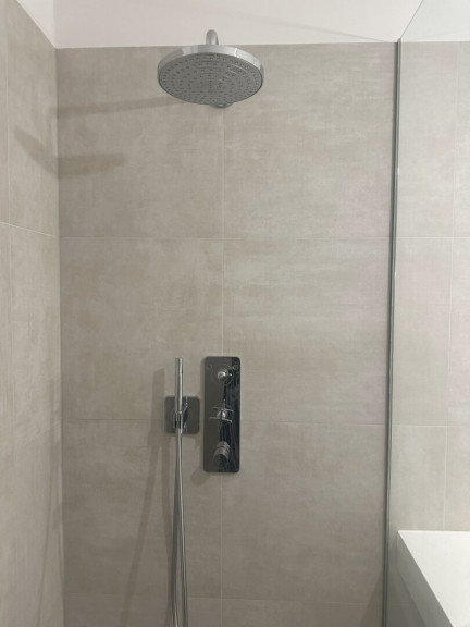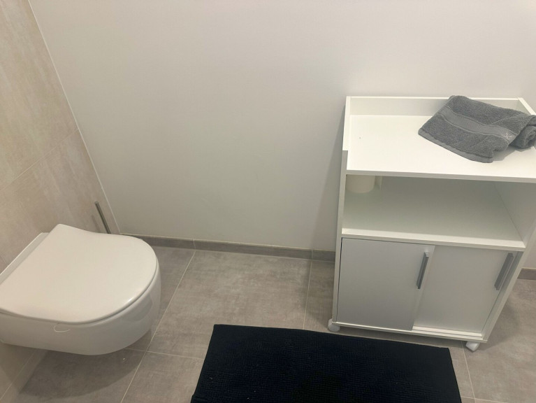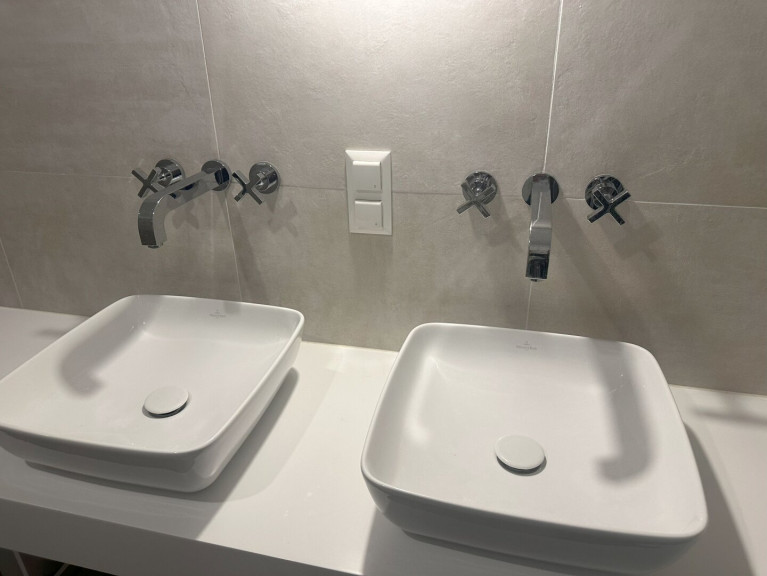- Großformatiges Feinsteinzeug in Bad, WC und Abstellraum: Format 60x60