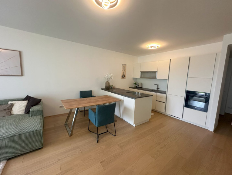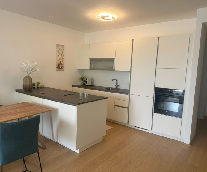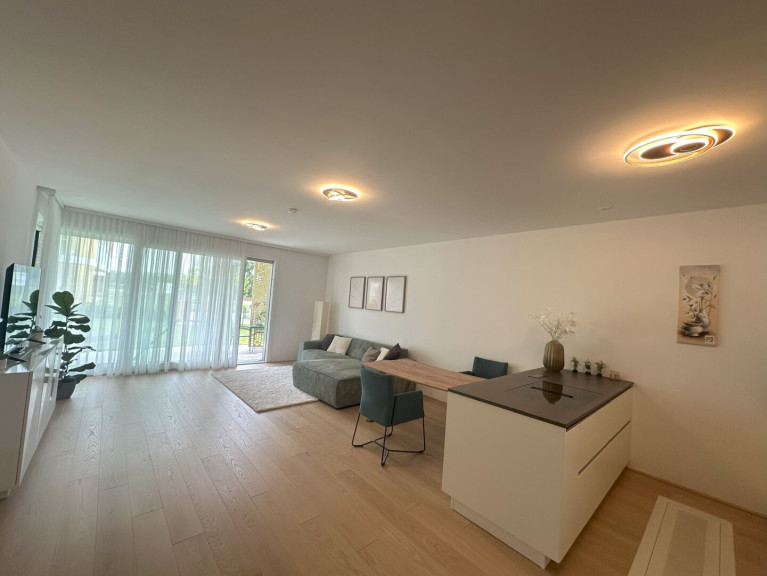 Die exklusive 3-Zimmer-Wohnung im ZWEITBEZUG mit einladender Loggia und großem Garten bietet dem zukünfigen Mieter ein außergewöhnliches Wohnerlebnis MIT PRIVATSTRAND. Die Wohnung verfügt über eine großzügige Wohnküche mit edler Markenküche und Ausgang auf die Loggia, 2 Schlafzimmer - beide mit Ausgang auf die Loggia, ein edel-ausgestattates Badezimmer mit Doppelwaschtisch, bodengleicher Dusche und Rainshowe sowie eine Handtuchtrockner und im Vorzimmer ein separates WC sowie einen praktischen Abstellraum mit WM-Anschluss.