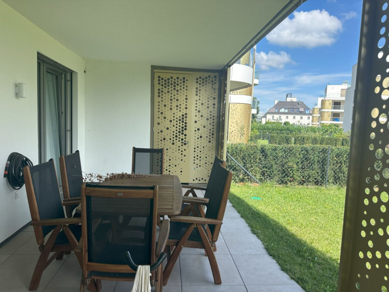 Die zur Vermietung stehende exklusive Gartenwohnung bietet den zukünftigen Mietern Stadtleben mit entspanntem Urlaubsfeeling. Sie befindet sich in der Luxus-Wohnanlage THE SHORE mit in Summe 10 architektonisch einzigartigen Villen mit jeweils 9 bis 23 Apartments sowie einer hellen Tiefgarage.