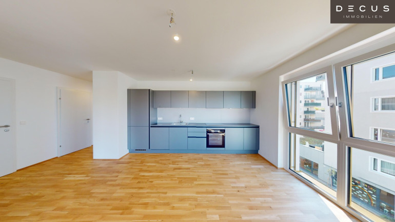 Die Wohnungen werden mit schönen Einbauküchen in weiß oder anthrazit übergeben. Zu den inkludierten Küchengeräten zählen: Kühl-/Gefrierschränke, Elektroherde mit Backrohren sowie Umluft-Dunstabzüge.