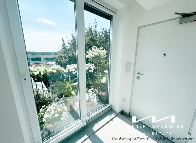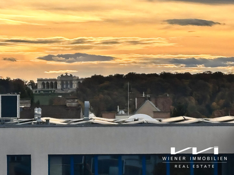 Direkt vorliegender Balkon mit Blick bis zur Gloriette
