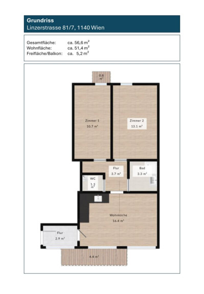 Helle 3-Zimmer-Wohnung in 1140 Wien