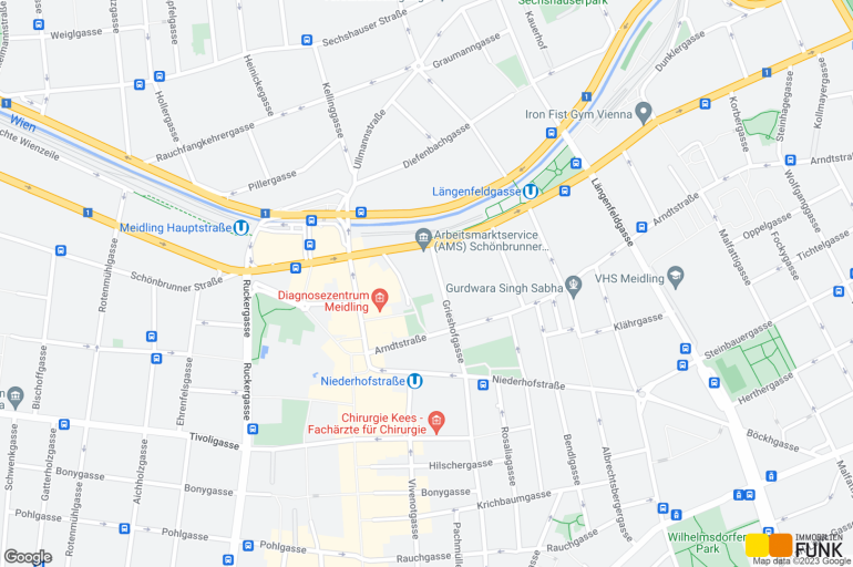Zur Vermietung gelangt ein kompaktes Büro in begehrter Lage Meidlings in unmittelbarer Nähe des Meidlinger Platzl's. Die Geschäfte des täglichen Bedarfs wie eine BILLA Filiale, ein Interspar und eine Volksbank stehen im fußläufigen Umkreis zur Verfügung. Für Mittagspausen eignen sich die zahlreichen Cafés und Restaurants der Umgebung. Das Büro ist bestens an die öffentlichen Verkehrsmittel angebunden. So erreichen Sie innerhalb von 2 Gehminuten die Busstation Niederhofstraße der Linie 10A und die U6-Station Niederhofstraße. Die U4-Station Meidlinger Hauptstraße ist ca. 7 Gehminuten entfernt gelegen. Zusätzlich stehen Ihnen in einem Umkreis von etwa 5 Gehminuten drei Parkgaragen zur Verfügung, nämlich die Interspar Garage Meidling, die Reschgasse Wien - APCOA Garage und die Füchselhofpark Garage, in denen Sie Kurz- oder Dauerparkmöglichkeiten finden.