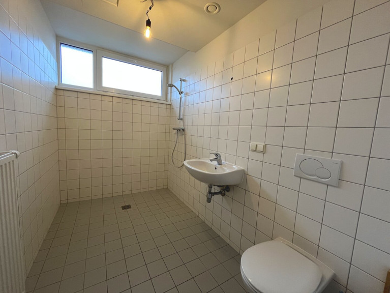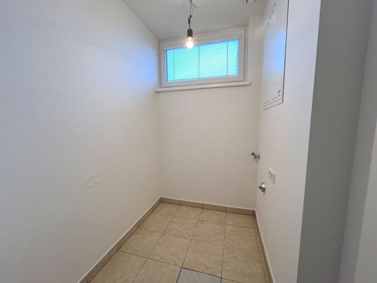 Das moderne Badezimmer ist mit einer großzügigen, bodengleichen Dusche ausgestattet und bietet alles, was man für den täglichen Bedarf benötigt. Für zusätzlichen Stauraum sorgt der praktische Abstellraum im Vorzimmer.