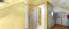 Die Inneneinrichtung des Hauses ist modern und hochwertig. Fliesen und Parkett sorgen für eine stilvolle und gleichzeitig praktische Gestaltung. Die Fußbodenheizung und die Zentralheizung garantieren ganzjährig ein angenehmes Raumklima, während die Einbauküche mit ausreichend Stauraum und modernen Geräten das Kochen zum Vergnügen macht. Das Badezimmer ist mit einem Fenster ausgestattet und verfügt über eine Badewanne – ideal für entspannte Auszeiten.
