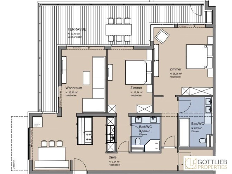 + ca. 36 m² Wohn-Ess-Bereich mit direktem Ausgang auf die südseitige Terrasse