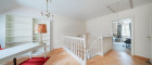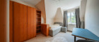 Über eine Holztreppe gelangt man in den oberen Bereich des Hauses, wo sich die offene Galerie befindet. Von dort erreicht man das elegante Badezimmer, dieses mit einer Badewanne, einen Waschtisch aus Marmor, einer Toilette und mit weißen Möbel vom Tischler ausgestattet ist. Rechts vom Badezimmer gelangt man in das großzügige Schlafzimmer, ausgestattet mit einen Balkon, wo man den herrlichen Garten beim Aufstehen betrachten kann. Neben dem Schlafzimmer befindet sich ein weiteres Zimmer, dieses sich als Arbeitszimmer oder Kinderzimmer eignet.