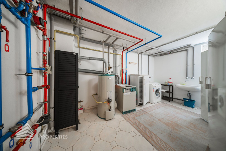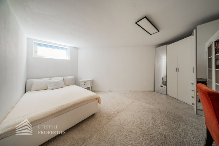 Des Weiteren verfügt das Haus über einen Wohnkeller, wo sich das Gästezimmer befindet. Ausgestattet mit einer Dusche, einen Waschbecken und einer separaten Toilette. Nebenan erreicht man den Wirtschaftsraum und Technikraum.