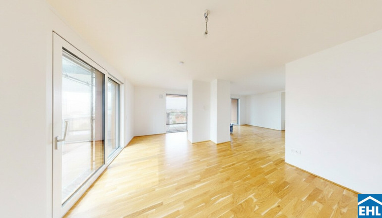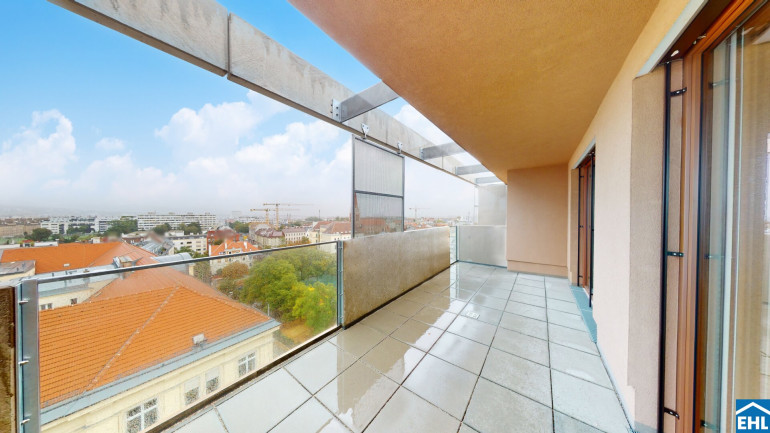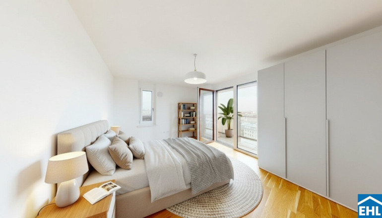 In der 10. Etage von Stiege 1 befindet sich die exklusive 4-Zimmer-Eigentumswohnung TOP 93 mit ca. 134 m² Wohnnutzfläche, einem umlaufenden Balkon von ca. 41 m² sowie einer zusätzlichen Terrasse mit ca. 14 m². Ein echtes Highlight ist der spektakuläre Weitblick – von der Otto-Wagner-Kirche bis zur Inneren Stadt Wiens. Diese Wohnung kombiniert Großzügigkeit, Ruhe und Panorama in einer Form, die in Wien ihresgleichen sucht.