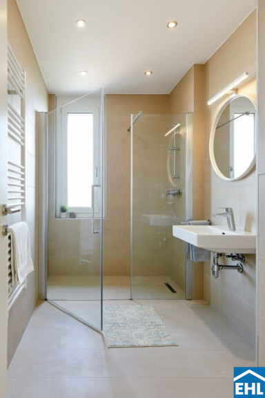 - 2 stilvolle Badezimmer (eines mit Badewanne, eines mit bodenebener Dusche)