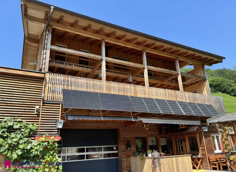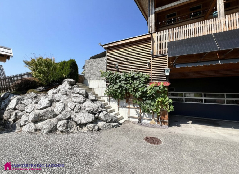 Sie finden dieses flexible Objekt in Massivholzbauweise in einer leichten Hanglage mit einem unverbaubaren Ausblick in die umliegende Bergwelt und herrliche Landschaft des inneren Salzkammergutes. Durch die geschickte Planung und Situierung können Sie sowohl in den Kellerbereich als auch in den Wohnbereich ungehindert zufahren. Es würde sich eine kombinierte Nutzung in Form von Wohnen und Arbeiten anbieten. Natürlich ist das Objekt auch für eine größere Familie geeignet, da es genug Fläche gibt. Im Kellerbereich stehen zahlreiche Räume zur Verfügung die bei Bedarf gewerblich genutzt werden können, über den Hof gelangt man ebenerdig in dieses Geschoß. Das Erdgeschoß wird derzeit als Wohnbereich genutzt, ebenso das Dachgeschoß, welches Ausbaureserven bietet.