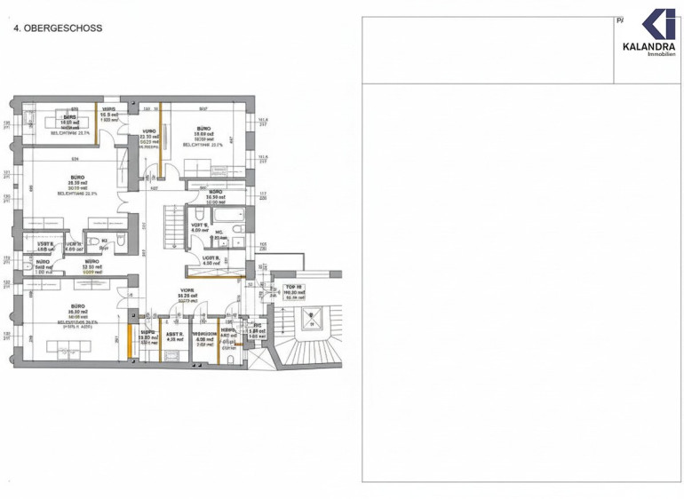 Vorraum, 6 Büroräume, Archivraum, Küche, WC.