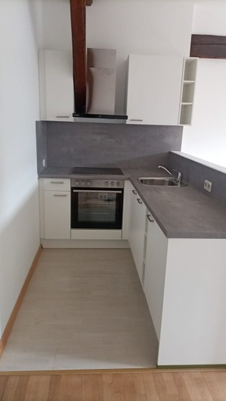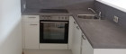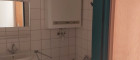 Offener Schlaf/Wohnbereich mit eingerichteter Küche. Bad mit Badewanne und Waschbecken.