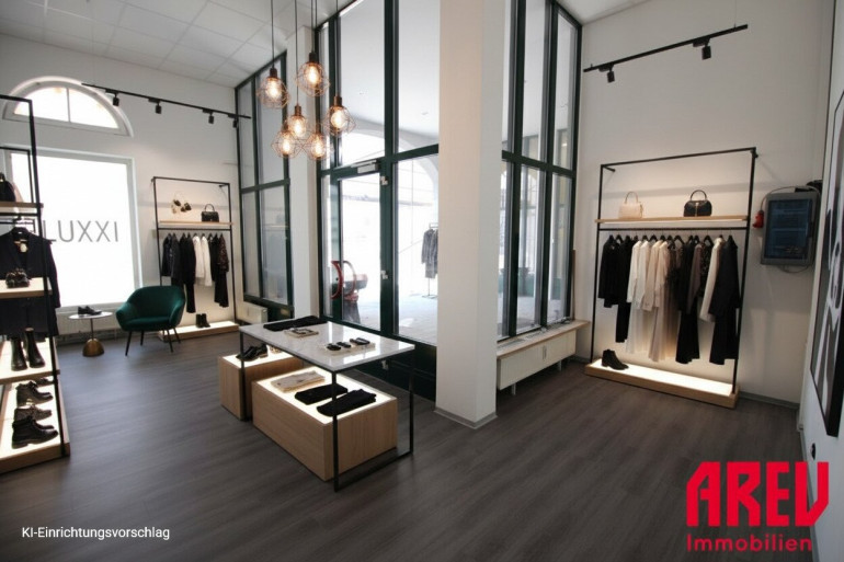 Das Geschäft ist verkehrsgünstig gelegen. Die großen, zur Straße gelegenen Schaufensterfronten bieten eine sehr gute Werbeeffektivität.