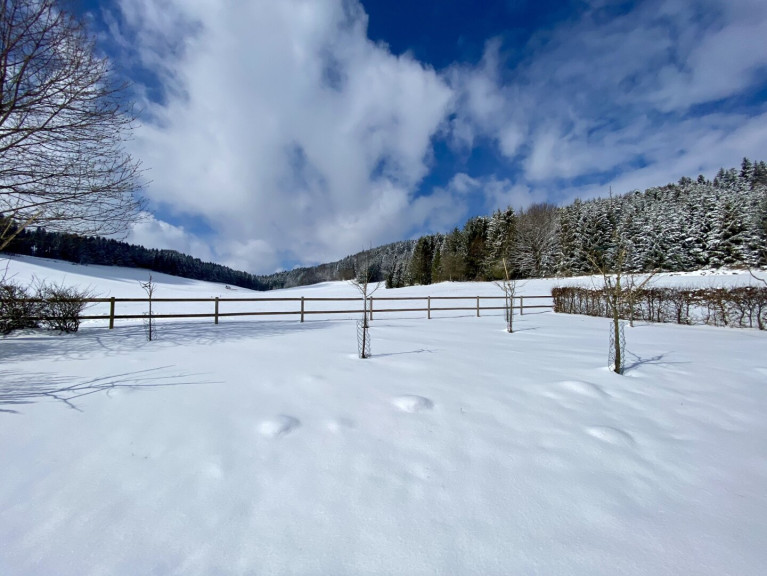 Zu den ursprünglichen Räumlichkeiten wie Stube, Schlaf- und Kinderzimmer, Küche und Wohnzimmer, kamen noch ein modernes Bad und zwei weitere Zimmer dazu. Beheizt wird das Haus mit Radiatoren (Flüssiggas Tank 2.700 Liter) und einem Speicher- Kachelofen im großzügigen Wohnraum.