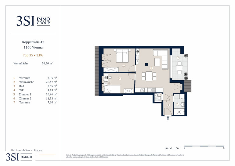 Mit einer Wohnfläche von ca. 56,5 m² sowie einer charmanten Terrasse bietet dieses Apartment im 1. Dachgeschoss der Koppstraße 43 modernes Wohnen in exklusiver Ausführung. Die intelligente Grundrissgestaltung schafft eine klare Trennung von Wohn- und Schlafbereich und überzeugt durch helle, offene Räume.