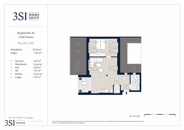 Top 38 - Moderne 2-Zimmer-Dachgeschoss-Wohnungmit Loggia