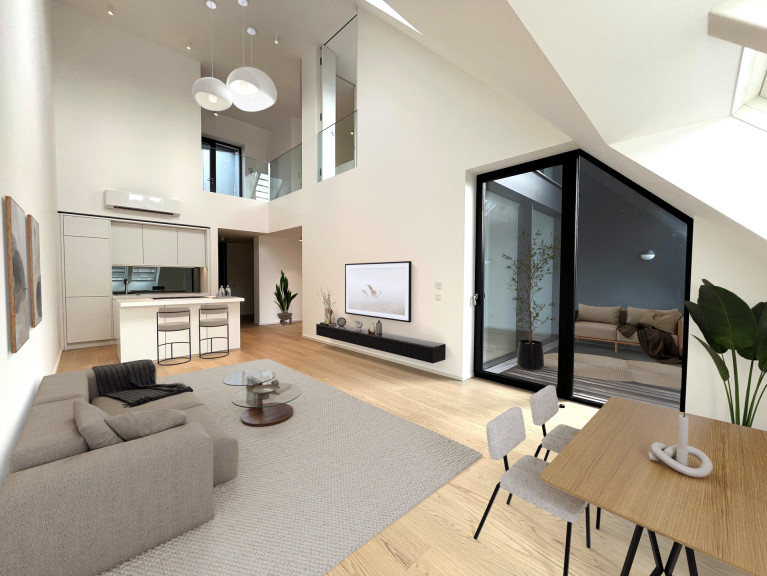 In den historischen Regelgeschoßen entstehen prächtige Altbauwohnungen mit klassisch großzügiger Raumhöhe, im ausgebauten Dachgeschoß stilreiche, moderne Designerobjekte allesamt mit Terrassen und/oder Dachterrassen und fantastischem Stadtblick.