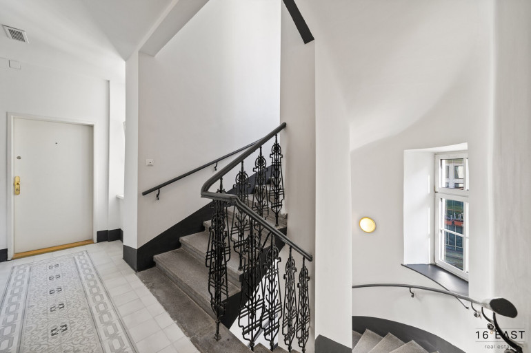 Die Liegenschaft vereint eine attraktive Lage mit dem besonderen Flair eines liebevoll renovierten Altbauhauses. Der Eingangsbereich wurde sorgfältig restauriert und verbindet klassische Details, wie schmiedeeiserne Geländer, harmonisch mit moderner Beleuchtung. Das stilvolle Stiegenhaus mit massivem Holzgeländer und originalen Stufen vermittelt ein elegantes, zeitloses Ambiente und unterstreicht den besonderen Charakter des Hauses.