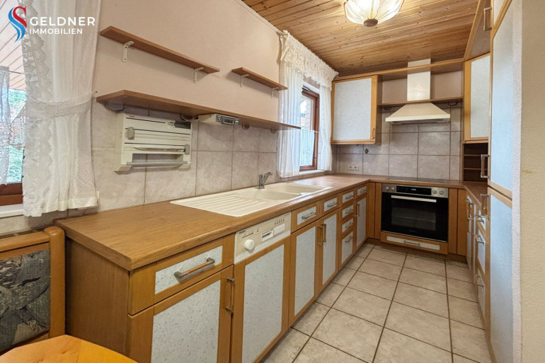 Küche komplett ausgestattet mit praktischer Sitzbank