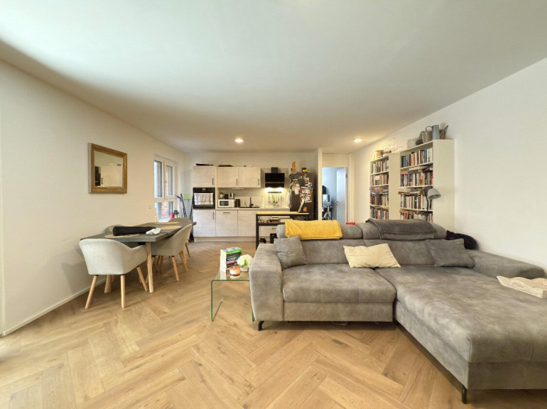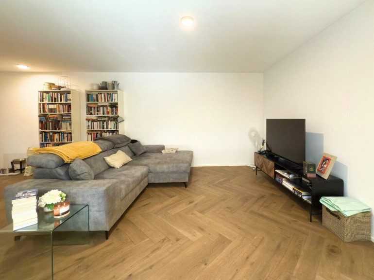 Das Herzstück der Wohnung bildet der rund 35 m² große Wohn-/Essbereich, ausgestattet mit edlem Fischgrätparkett. Eine praktische und moderne Hebe-Schiebetür führt auf den großzügigen Balkon – ideal zum Entspannen oder als erweiterter Lebensraum an sonnigen Tagen.