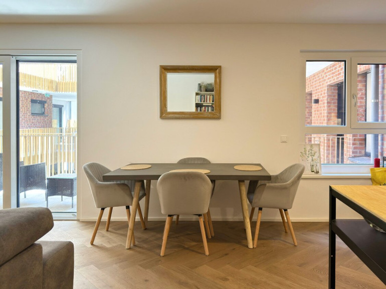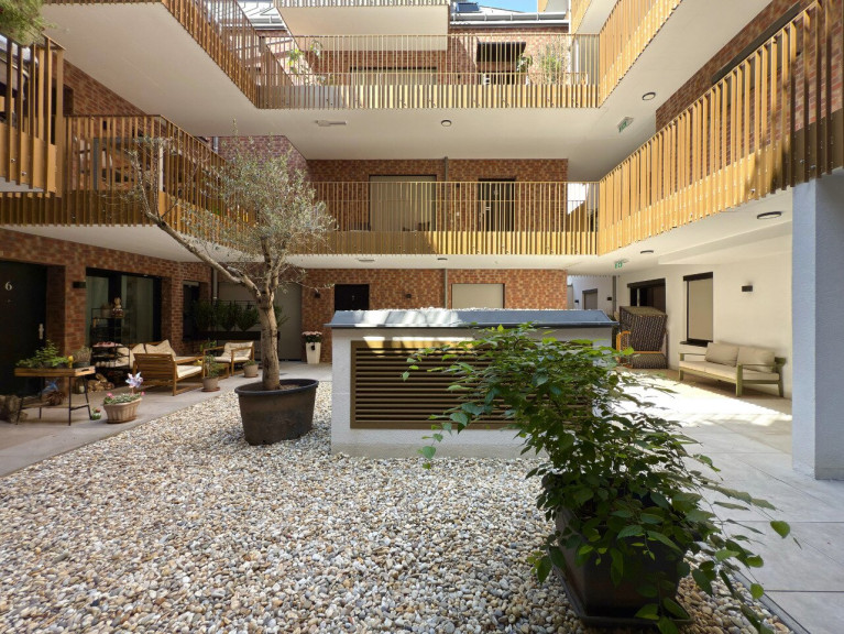 Nicht nur in der Wohnung selbst, sondern auch im gesamten Projekt wurde großer Wert auf hochwertiges Design gelegt– von der stilvollen Innenraumgestaltung bis zur markanten Backsteinfassade, die dem Haus einen zeitlosen, urbanen Charakter verleiht. Dieses Niveau hebt das Gebäude klar vom Standard-Neubau ab.