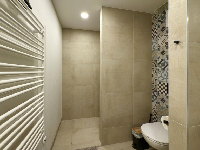 Badezimmer mit Handtuchheizung und Waschmaschinenanschluss