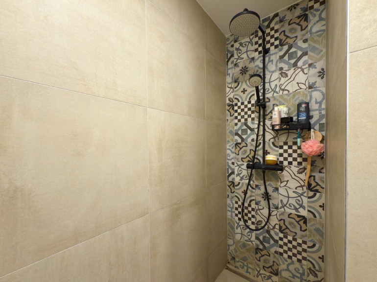 Großformatiges Feinsteinzeug (60×60 cm) im Badezimmer