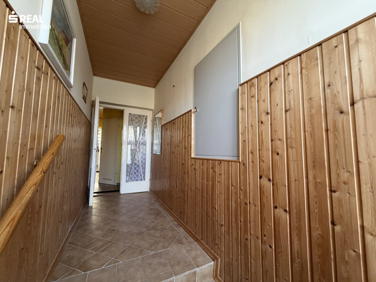 Aufgang in den Oberstock und Ausgang auf die Terrasse samt Garten.