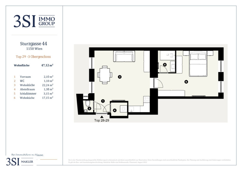 Der guten Ordnung halber halten wir fest, dass, sofern im Angebot nicht anders vermerkt, bei erfolgreichem Abschlussfall eine Provision anfällt, die den in der Immobilienmaklerverordnung BGBI. 262 und 297/1996 festgelegten Sätzen entspricht – das sind 3 % des Kaufpreises zzgl. 20 % USt. Diese Provisionspflicht besteht auch dann, wenn Sie die Ihnen überlassenen Informationen an Dritte weitergeben. Letztlich weisen wir darauf hin, dass wir als Doppelmakler tätig sind und ein familiäres/wirtschaftliches Naheverhältnis zwischen der 3SI Makler GmbH und der Verkäuferin besteht.