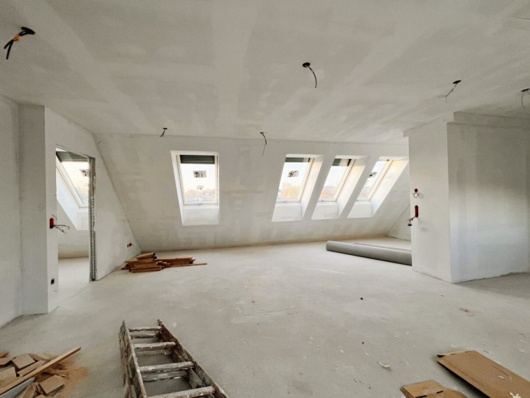 Im 1. und 2.Dachgeschoss werden insgesamt 6 Wohnungen errichtet. Im 2. und 3. Stock werden aktuell 8 Altbauwohnungen saniert.