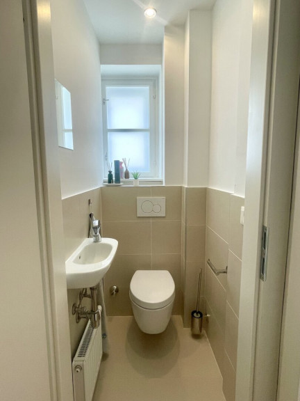 Die Wohnung verfügt über drei Zimmer, eine moderne offene Einbauküche, ein Bad mit Dusche und ein extra WC.