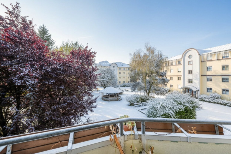 Der großzügige Balkon in Richtung eines ruhigen, begrünten und großzügigen Innenparks ist der perfekte Ort, um die frische, alpine Luft zu genießen und bei einem Glas Wein den atemberaubenden Fernblick auf die umliegenden Berge zu bewundern. Stellen Sie sich vor, wie Sie hier entspannte Stunden verbringen, während Sie den Sonnenuntergang über dem Tiroler Himmel beobachten.