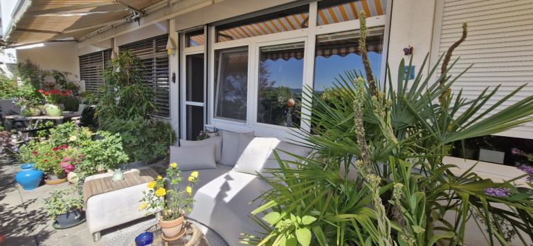 großzügige südwestseitige Terrasse mit wunderschönem Ausblick und Abendsonne