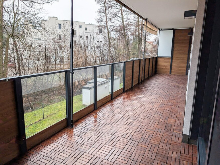 Die Wohnung ist mit hochwertigen Fliesen, Parkett, Sanitär und einem modernen Sonnenschutz ausgestattet.