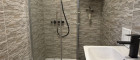 - Badezimmer: Modernes Badezimmer mit Dusche.