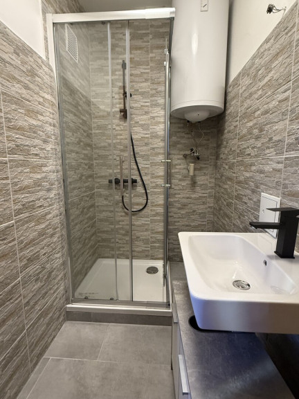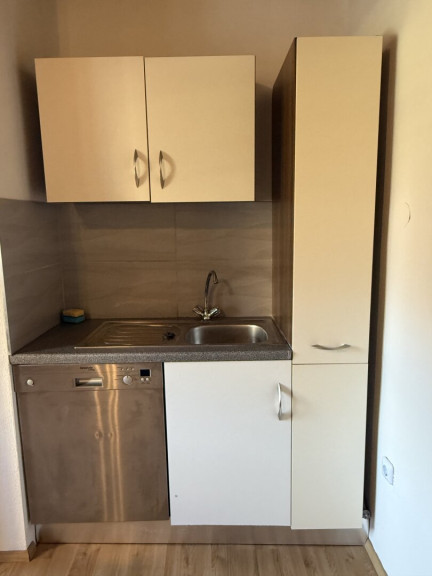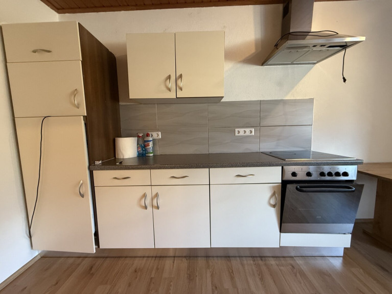 Elektro, Heizofen, Einbauküche, Bad mit Fenster, Dusche