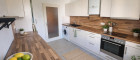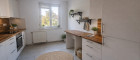 Küche: separate Einbauküche mit Geräten, Platz für Esstisch, Fenster vorhanden