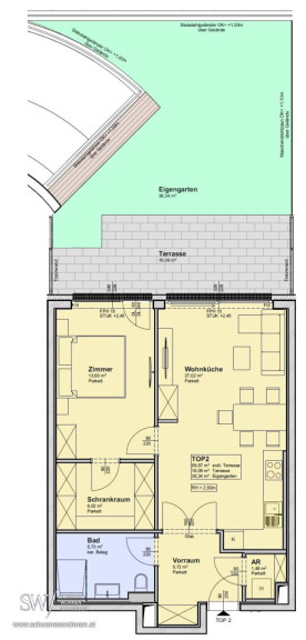 TOP 2: 2 Zimmer | 59,75 m² | 38,34 m² Garten | 16,09 m² Terrasse | € 612.000,-