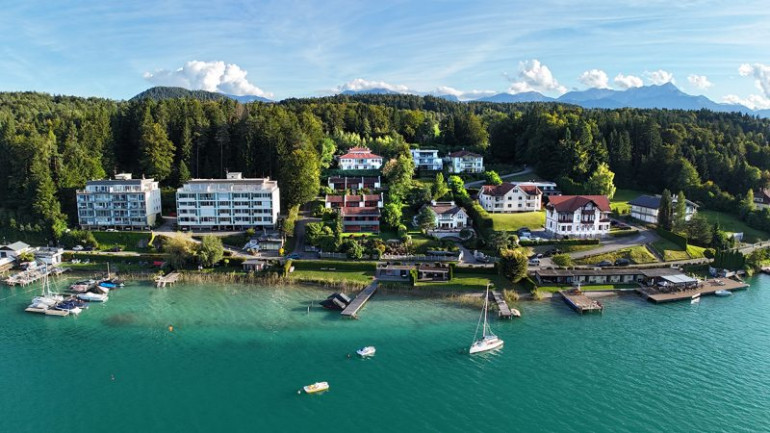 Die Lage könnte nicht exklusiver sein: In nur wenigen Gehminuten erreichen Sie den Sol Beach Club, renommierte Spitzenrestaurants, das Schlosshotel Velden, das Casino und zahlreiche weitere Hotspots, die Velden zu einem der attraktivsten Orte Österreichs machen.