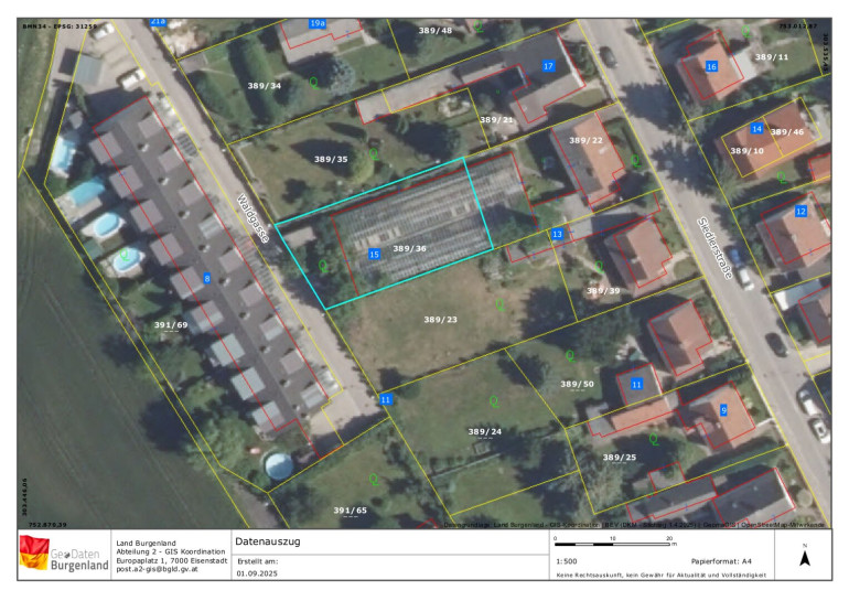 Das Grundstück liegt in einer ruhigen Sackgasse. Zum Baden im beliebten Neufelder See sind es lediglich 4 Autominuten. Die Distanz zum Bahnhof sind 1,3 km und zum Hauptplatz sind es nur 800m. Spar, Billa und Hofer, welche über eine großen Parkplatz verfügen, sind bequem in 3 Autominuten zu erreichen. Zudem befinden sich mehrere Restaurants in der Ortschaft, die auch zu Fuß gut erreichbar sind. Ein Kindergarten befindet sich in einer Entfernung von 900m und zur Volksschule und Mittelschule sind es 950m.